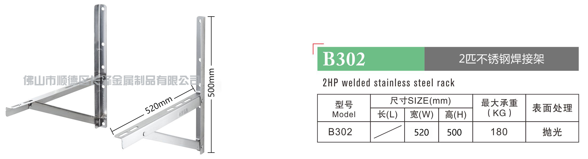 本空不锈钢空调支架适用于3匹空调柜机的安装,表面抛光,焊接加铆钉,厚度为1.8mm,重量为2.6KG,可根据需要配横杠。包装:5对/件。