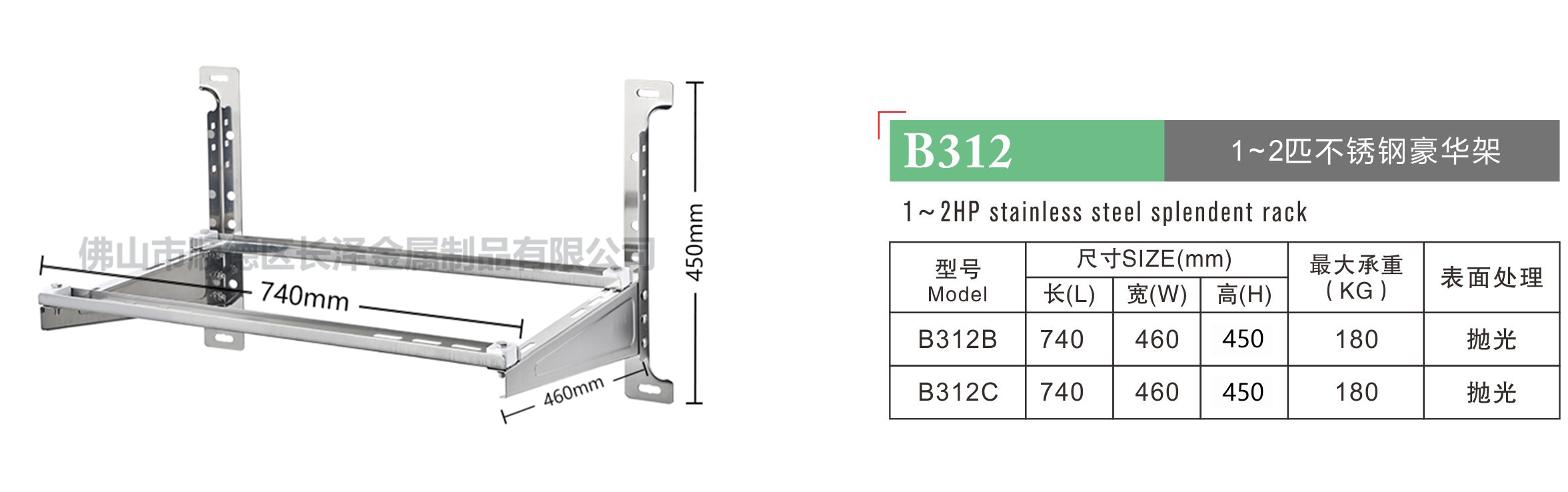 本不锈钢空调支架适用于1-2匹空调挂机的安装,产品表面抛光,有B、C两种规格,B级为4KG,C级为3.5KG。配有横杠和安装螺丝。产品优点:安全稳固,存放及运输方便,独立包装。